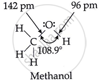 \[\ce{C - O - H}\] bond angle in alcohol is slightly less than slightly less than 109°28'.