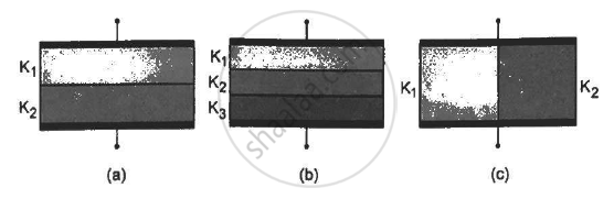 Find the capacitances of the capacitors shown in figure . The plate area is Aand the separation between the plates is d. Different dielectric slabs in a particular part of the figure are of the same thickness and the entire gap between the plates is filled with the dielectric slabs.