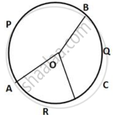 The circumference of a circle, with center O, is divided into three arcs APB, BQC, and CRA such that:
