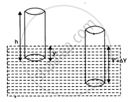 :. Acceleration, `a = F/m = (Arho_1g triangle y)/(Ahrho) = (rho_1g)/(hrho). triangle y ` and the acceleration is directed in a direction opposite to `triangle y`. Obviously, as `a prop - triangle y`, the motion of cork cylinder is SHM, whose time period is given by