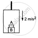 The elevator shown in the following figure is descending with an acceleration of 2 m/s2. The mass of the block A is 0.5 kg. What force is exerted by the block A on the block B?