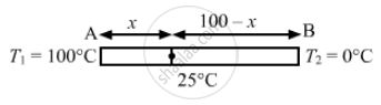 The ends of a metre stick are maintained at 100°C and 0°C. One end of a rod is maintained at 25°C. Where should its other end be touched on the metre stick so that there is no heat current in the rod in steady state?