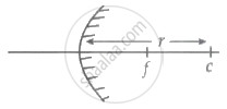 The focal length f is related to the radius of curvature r of the spherical convex mirror by `bb("f" = +1/2"r")`.