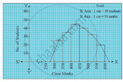 | Class Mark | Classes of Marks | No. of students (Frequency) | Co-ordinates |