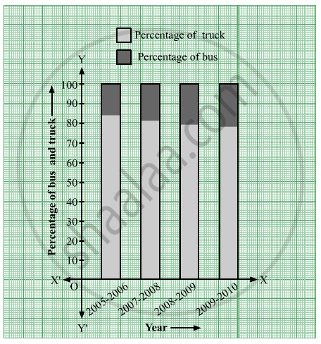 The following table shows the number of Buses and Trucks in nearest lakh units. Draw percentage bar-diagram. (Approximate the percentages to the nearest integer)