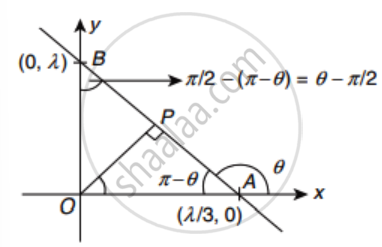 Now, from ΔOAB: cos (π − θ) = `(AP)/(OA)`