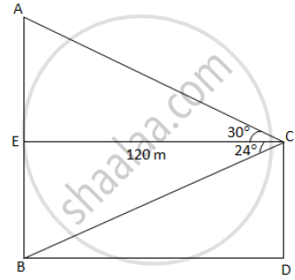 The horizontal distance between two towers is 120 m. The angle of elevation of the top and angle of depression of the bottom of the first tower as observed from the second tower is 30° and 24° respectively.