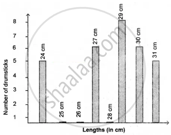 The lengths (in the nearest centimetre) of 30 drumsticks are given as follows.