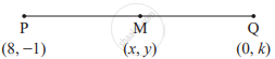The given line bisects the join of A(8, −1) and B(0, k), so the coordinates of the midpoint of AB will satisfy the equation of the line.