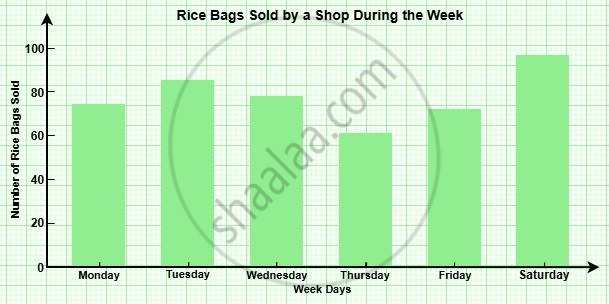 Here is the bar chart showing the number of rice bags sold by a shop during the week. As seen, Saturday had the highest sales (97 bags), while Thursday had the lowest (61 bags).