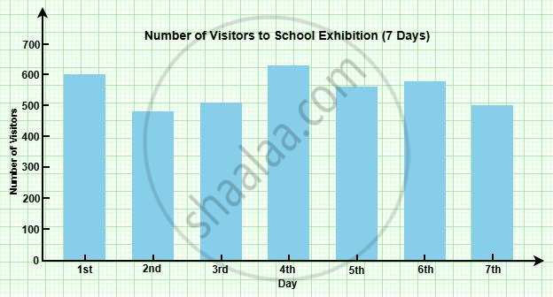 Here is the bar graph showing the number of visitors to the school exhibition over 7 days. The highest number of visitors was on the 4th day (630 visitors), and the lowest was on the 2nd day (480 visitors).