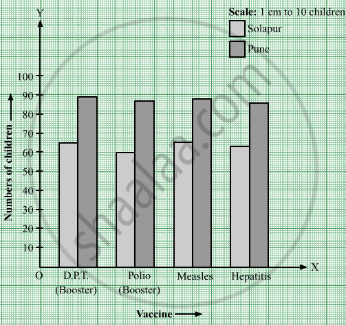 The numbers of children vaccinated in one day at the government hospitals in Solapur and Pune are given in the table. Draw a joint bar graph for this data.