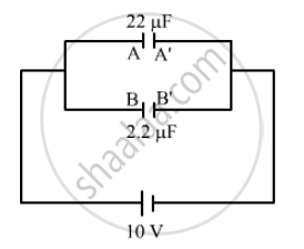 ∴ Magnitude of the charge on each capacitor = CV = (2.2 μF) × (10V) = 22 µC