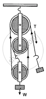 The pulley system shown in the figure is to be used to lift a load W. If the man applying the effort cannot apply a force exceeding 1000 N, what is the maximum load that can be lifted?
