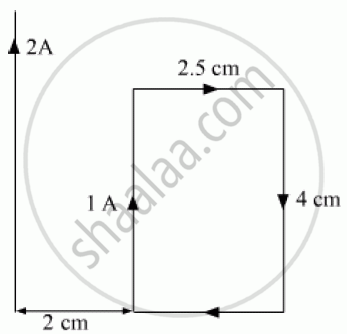A rectangular loop of wire of size 2.5 cm × 4 cm carries a steady current of 1 A. A straight wire carrying 2 A current is kept near the loop as shown. If the loop and the wire are coplanar, find the (i) torque acting on the loop and (ii) the magnitude and direction of the force on the loop due to the current carrying wire.
