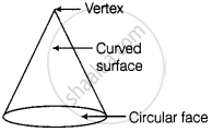The solid with one circular face, one curved surface and one vertex is known as cone.