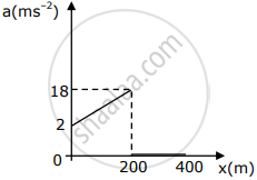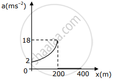 The slope of the velocity vs displacement graph is constant from x = 0 to 200m, but velocity increases.