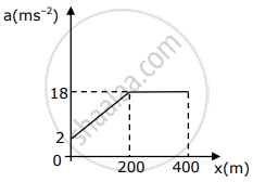The slope of the velocity vs displacement graph is zero between x = 200 and 400m.