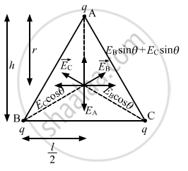 Let \[E_A , E_B \text{ and } E_C\] be the electric fields at the centre due to the charges at A, B and C, respectively.