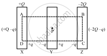 `("Q"-"q")/(2"A"∈_0)+"q"/(2"A"∈_0) -"q"/(2"A"∈_0) - "q"/(2"A"∈_0) + "q"/(2"A"∈_0) + (2"Q"-"q")/(2"A"∈_0) = 0`