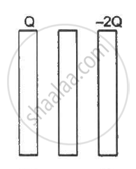 Thus, the charge on the outer plate of the right-most plate = `-2"Q" +"q" = -2"Q"+ (3"Q")/2 = -"Q"/2`