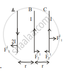 ∴ i.e. `"F"_1 = mu_0/(4pi) (2"I" xx "I")/"2r"`