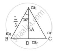 Three particles each of mass 'm1' are placed at the comers of an equilateral triangle of side `L/3.` A particle of mass 'm2' is placed at the mid point of any one side of triangle. Due to the system of particles the force acting on 'm2' is ______.