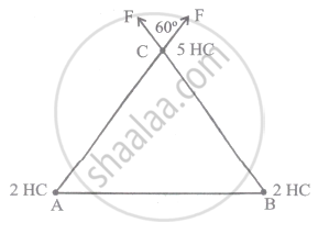 Three point charges +2, +2, and +5µC are placed respectively at the vertices A, B, C of an equilateral triangle of side 0.2 m. The magnitude of the force experienced by the charge at C is 2.25`underlinesqrt3` newton.