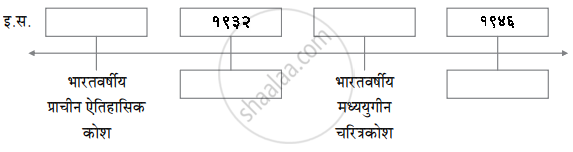 इतिहास विषयाशी संबंधित कोशांच्या संदर्भातील पुढील कालरेषा पूर्ण करा.