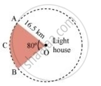 It can be observed from the figure that the lighthouse spreads light across a sector of 80° in a circle of 16.5 km radius.
