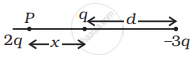 ∴ `(2q^2)/(4 piε_0 x^2) = (6q^2)/(4 piε_0 (d + x)^2`