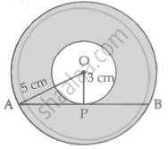 Let O be the centre of the two concentric circles of radii 5 cm and 3 cm, respectively. Let AB be a chord of the larger circle touching the smaller circle at P.