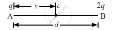 Two particles A and B with charges q and 2q, respectively, are placed on a smooth table with a separation d. A third particle C is to be clamped on the table in such a way that the particles A and B remain at rest on the table under electrical forces. What should be the charge on C and where should it be clamped?