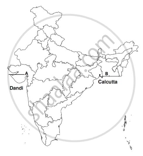 Two places A and B have been marked on the given outline map of India. Identify them and write their correct names on the lines marked on the map.