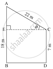 Two poles of heights 18 metre and 7 metre are erected on a ground. The length of the wire fastened at their tops in 22 metre. Find the angle made by the wire with the horizontal.