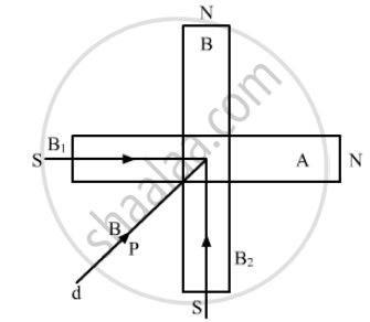 Two short magnets of equal dipole moments M are fastened perpendicularly at their centre in the Figure . The magnitude of the magnetic field at a distance d from the centre on the bisector of the right angle is
