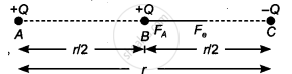 `"F"_"net" = "F"_"A" + "F"_"C" = "kQ"^2/("r"/2)^2 + "kQ"^2/("r"/2)^2 = (8"kQ"^2)/"r"^2`