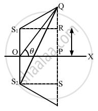 Two sources of sound S1 and S2 vibrate at same frequency and are in phase. The intensity of sound detected at a point P as shown in the figure is I0. (a) If θ equals 45°, what will be the intensity of sound detected at this point if one of the sources is switched off? (b) What will be the answer of the previous part if θ = 60°?
