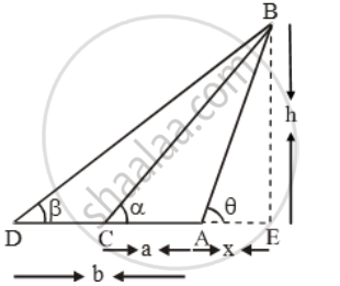 `\tan \theta =\frac{BE}{AE}\Rightarrow \tan \theta =\frac{h}{x}`