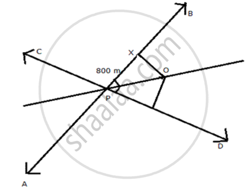 Two straight roads AB and CD cross each other at Pat an angle of 75° . X is a stone on the road AB, 800m from P towards B. BY taking an appropriate scale draw a figure to locate the position of a pole, which is equidistant from P and X, and is also equidistant from the roads.