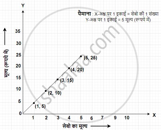 उपयुक्त पैमाना लेते हुए (x-अक्ष के लिए, 1 इकाई = 1 सेब और y-अक्ष के लिए, 1 इकाई = 5 रुपये)