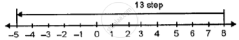 Starting from the position of -5, count the number of steps needed to reach +8, we fine 13 steps towards the right.