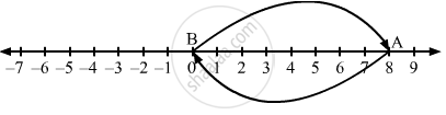 On the number line, we start from 0 and move 8 steps to the right to reach point A. Now, starting from A, we move 8 steps to the left to reach point B.