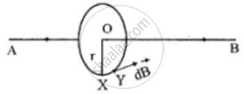 Let AB, a long straight wire is carrying current i. The magnetic flux density `bar(B)` is to be required at point X at a distance r.