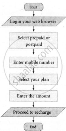 Using given step by step process to recharge mobile phone, draw a sequence flowchart