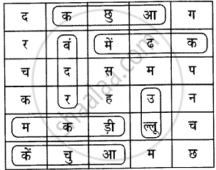 वर्ग पहेली में मेरा नाम ढूँढ़े और उन पर घेरा Ο लगाओ। एक उदाहरण दिया गया है।