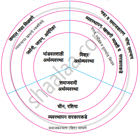 वर्तुळातील प्रश्नचिन्हांच्या जागी योग्य माहिती भरून अर्थव्यवस्थेचे प्रकार स्पष्ट करा.