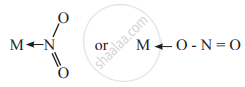 - The ligand `"NO"_2^-` links to the metal ion through nitrogen or oxygen.