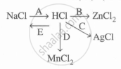 Study the flow chart and give balanced equations with conditions for the conversions A, B, C, D, and E.