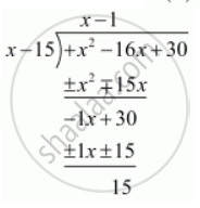Thus we should subtract the remainder 15 from `x^2 - 16x+30`